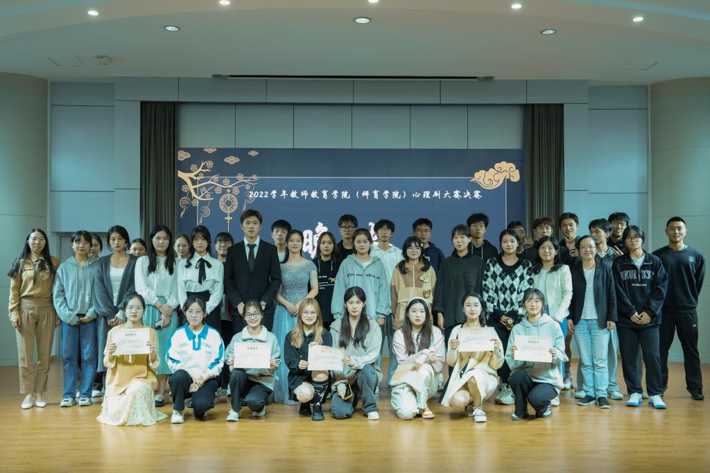 为加强学生对心理健康的关注,营造阳光向上的校园氛围,10月25日晚,教师教育学院(体育学院)于学生活动中心举办“心迹蹁跹,演映成趣”心理剧大赛决赛。院党委委员郑殷钰,辅导员徐薇、赵远远,参赛选手及各班观众代表出席本次活动。