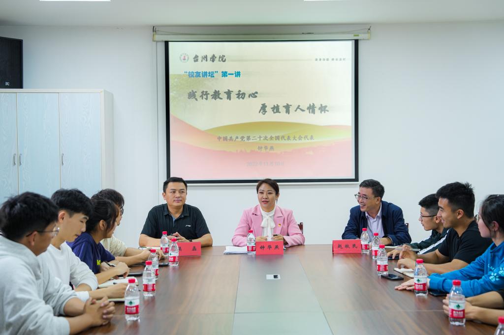 赵校民书记对钟华燕校友做客“学长学姐开讲啦”表示欢迎和感谢,对钟华燕作为中国共产党第二十次全国代表大会代表表达了由衷的祝贺。作为台院校友,钟华燕用实际行动为母校再添荣光,为台院学子树立了榜样。