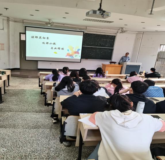 讲座主要内容:师范生专业知识学习的重要性、基本功练习的重要性、高情商的重要性。