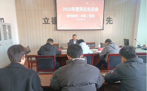 2月21日下午,教师教育学院党委召开2022年度民主生活会,校党委副书记、校长乐传永到会指导,院党委书记吴银银主持会议,学院党政领导班子成员、党委委员参加会议。