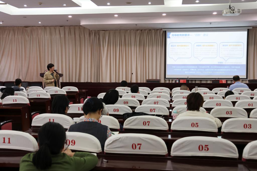 金凌虹以“教育强国高教何为?——新时代高等教育新使命新要求”为主题,分析了新时代高等教育的新使命、新要求以及地方高校的新作为,并从人才培养目标、人才培养理念和人才培养模式角度介绍了我校学科建设的现状。金凌虹同时解读了新一轮审核评估的指导思想和创新之处,并对审核评估里的指标体系作了分析。