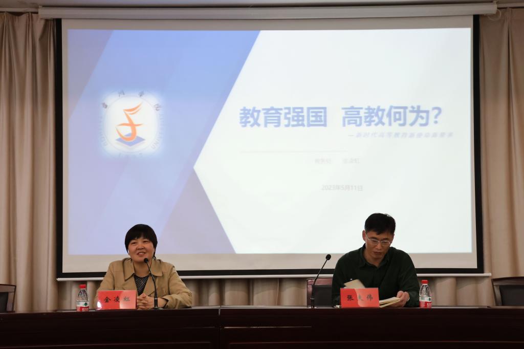 为顺利推进本科教育教学审核评估工作,深化教师对新一轮审核评估的认识,5月11日下午,教师教育学院邀请教务处处长金凌虹作本科教育教学审核评估工作宣讲。院长张夫伟主持宣讲会,学院领导班子及全体教职工参加。
