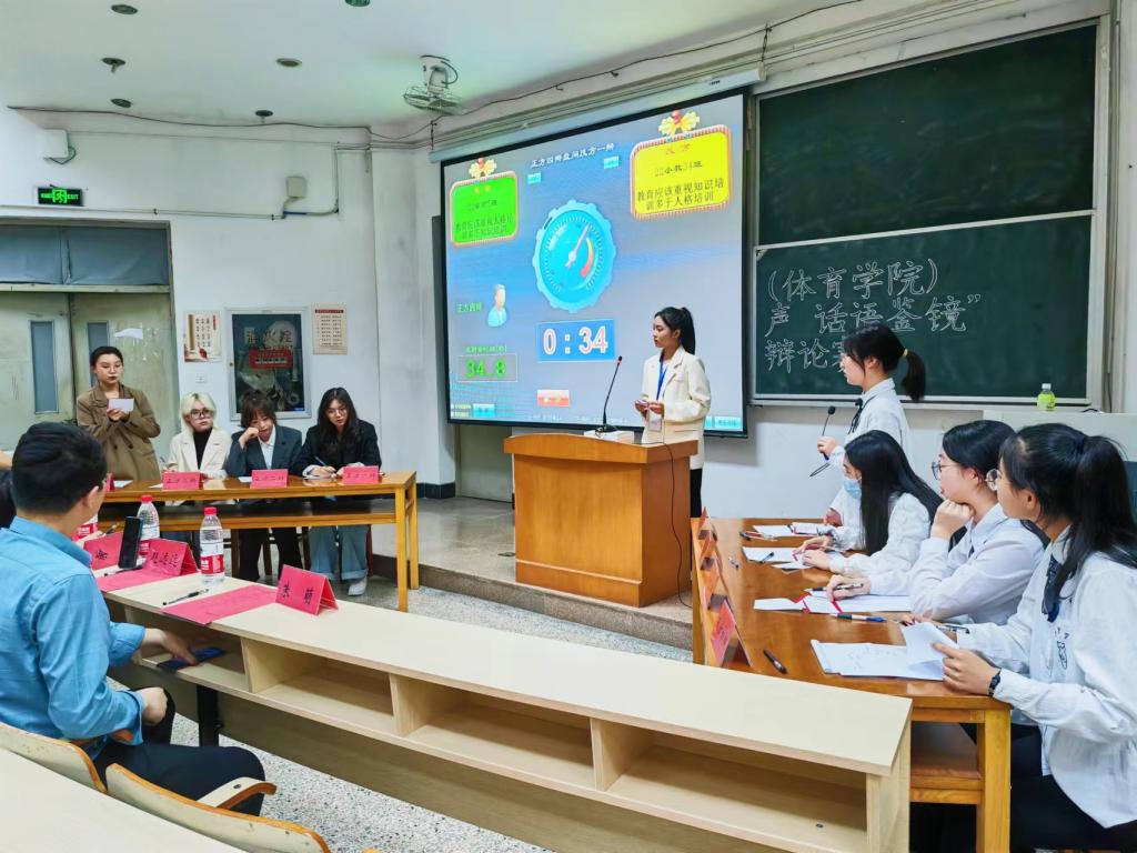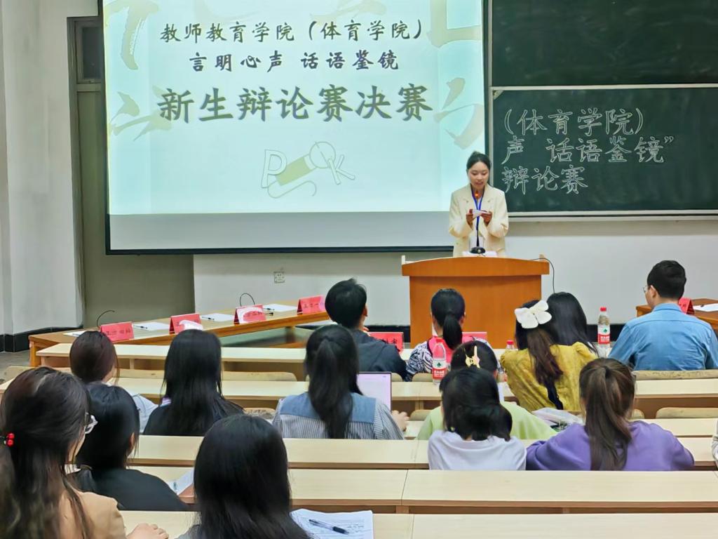 为充分锻炼同学们的语言表达能力,培养团队协作能力和竞争意识,5月12日下午6点30分,教师教育学院(体育学院)于A5阶梯教室举办“言明心声,话语鉴镜”新生辩论赛决赛。本次比赛由辅导员徐薇、赵远远、朱萌、季树宇担任评委,周芝怡同学担任主持人,2022级部分同学作为参赛选手参加本次比赛。