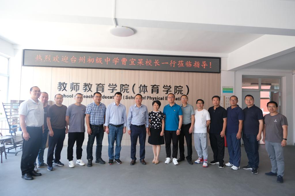 5月19日上午,台州初级中学党总支书记、校长曹宜杲一行来我校开展基础教育成果奖培育推进活动。教师教育学院院长张夫伟、党委书记吴银银、副院长林辉杰、体育教工党支部书记覃宇德及相关骨干教师参加会议。