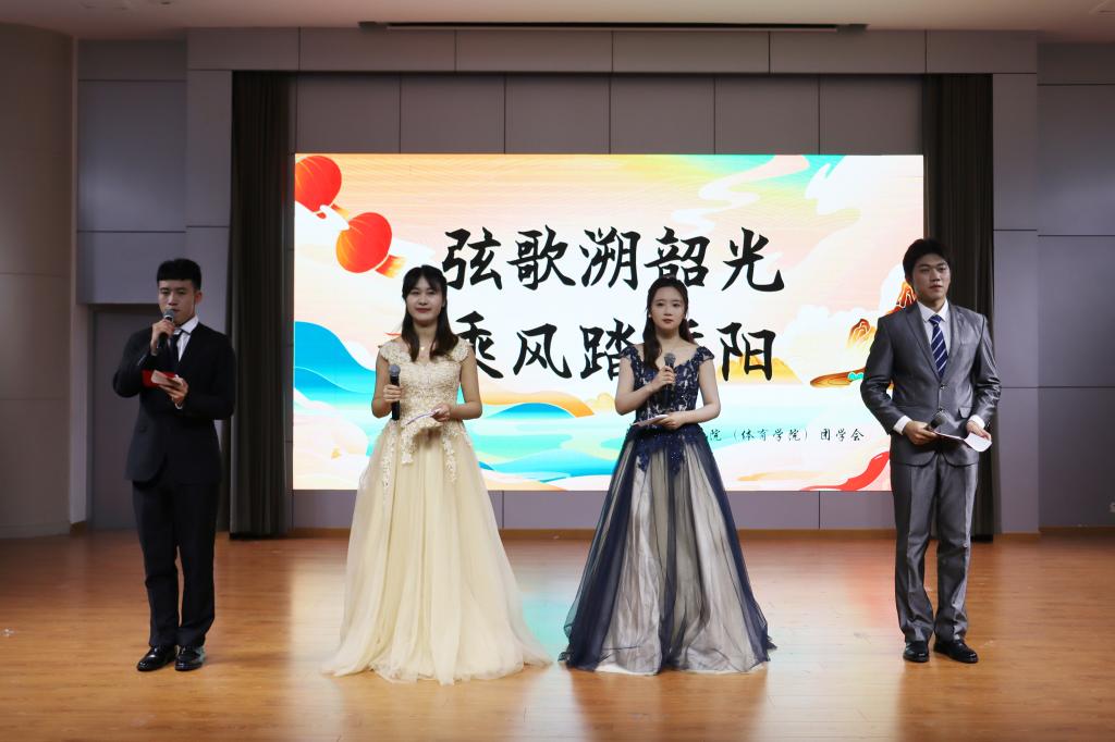 6月2日晚,教师教育学院(体育学院)于学生活动中心举办“弦歌溯韶光,乘风踏骄阳”专业汇报演出。本次活动由彭齐乐、朱影端、李钱和梅弘焘担任主持,辅导员阎宝莹、徐薇、朱萌、季树宇和团学会主席团成员应邀出席。