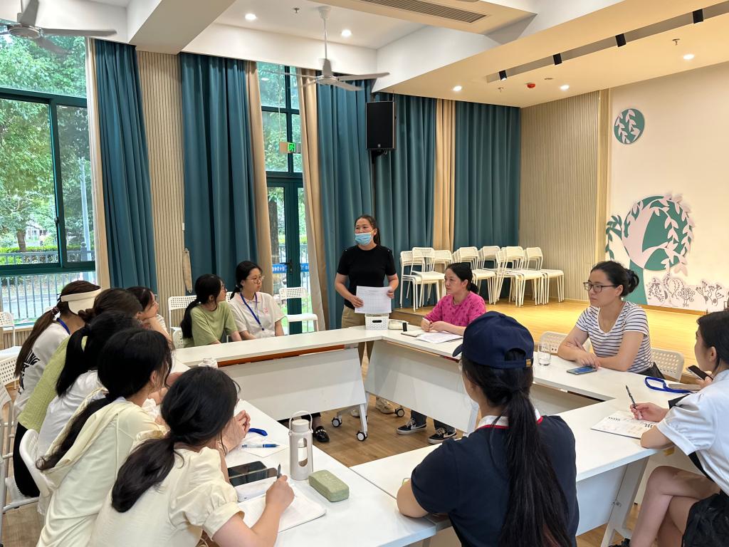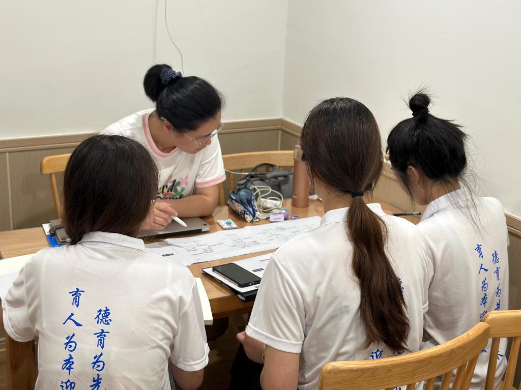 午休时间,汤霞敏老师、各班指导老师以及实践队成员一起开展教学研讨活动,让各位实践队成员更加明确了后期地教学方向和思路。