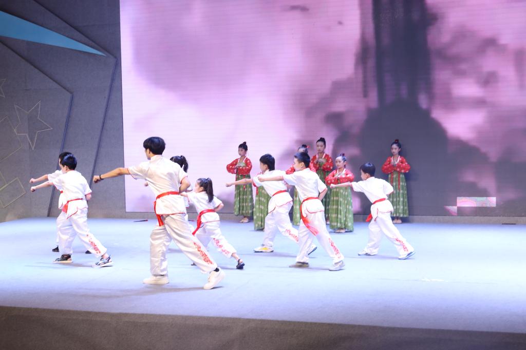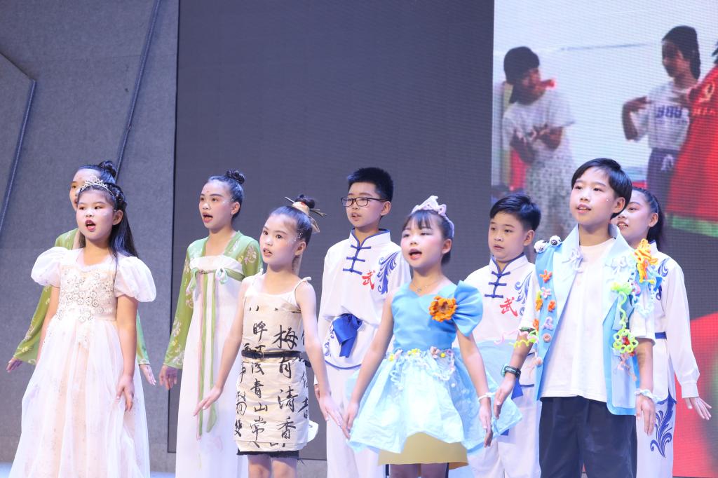 走出活力,走出风采。长屿小学的节目《笙歌扬长屿尔共赏》,采用走秀与合唱的形式,将孩子们一撇一捺的书法作品作为服装大方展现,将一舞一韵跳出的画卷与观众分享,精彩绝伦的美术制品、志气方刚的武术表演尽情展现孩子们两周丰厚的收获。