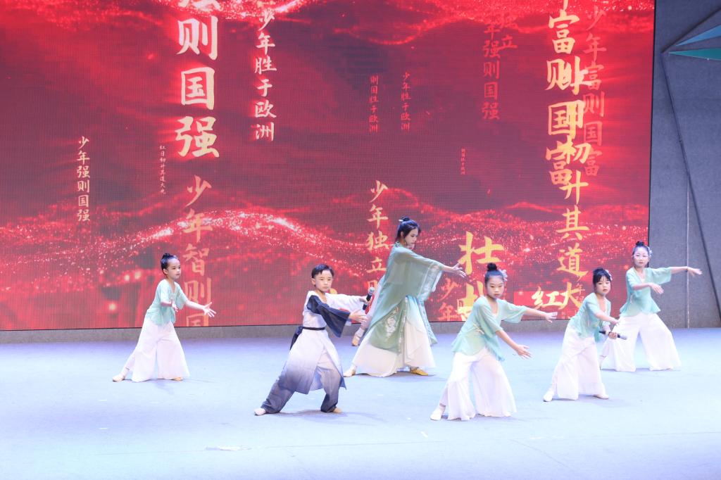 透过历史的眼眸,我们站在岁月的肩膀上远眺。由春晖小学带来的《少年中国说》,展现了我们肩负的沉甸甸的嘱托,描绘了我们憧憬的美好未来。中华经典的铿锵音韵在我们耳边回响。