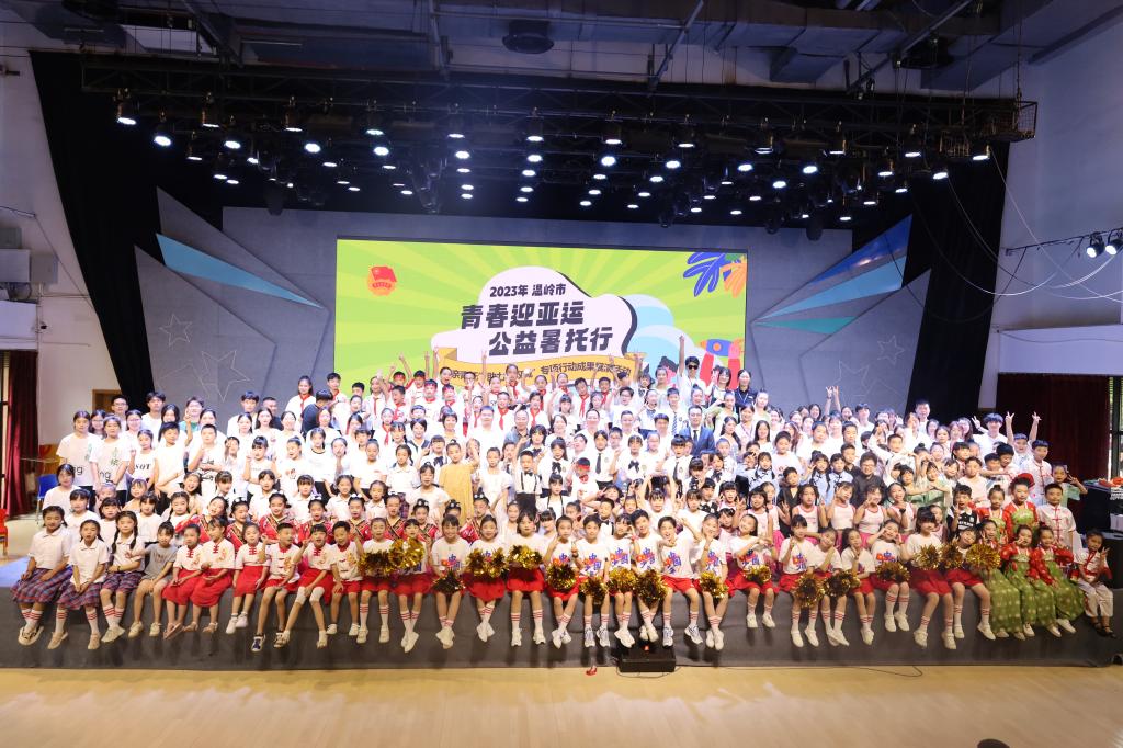 为响应“双减”政策,充分锤炼大学生社会实践能力,7月23日下午,教师教育(体育)学院携手温岭团市委、温岭市教育局在温岭市青少年宫举办“青春迎亚运,公益暑托行”暑期社会实践成果展演活动。温岭市团委副书记吴嘉峰、教师教育(体育)学院党委书记吴银银及相关领导出席本次活动。
