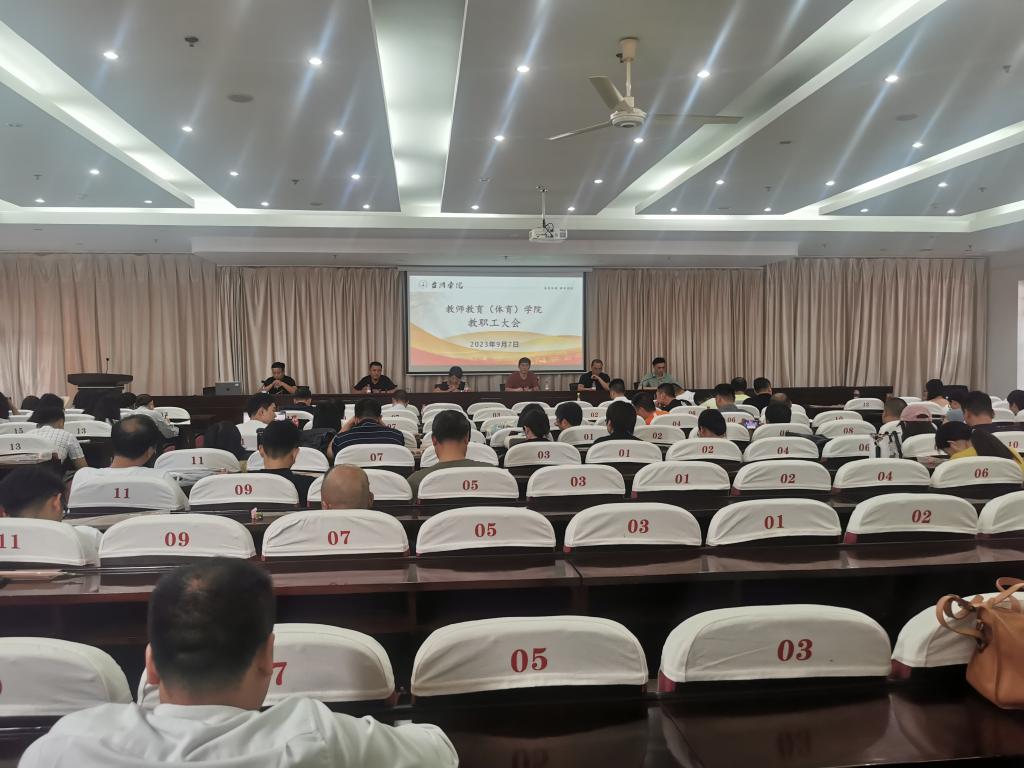 9月7日下午,教师教育(体育)学院在临海校区学术报告厅召开新学期教职工大会,学院党政班子和全体教职工参加。会议由学院党委书记吴银银主持。