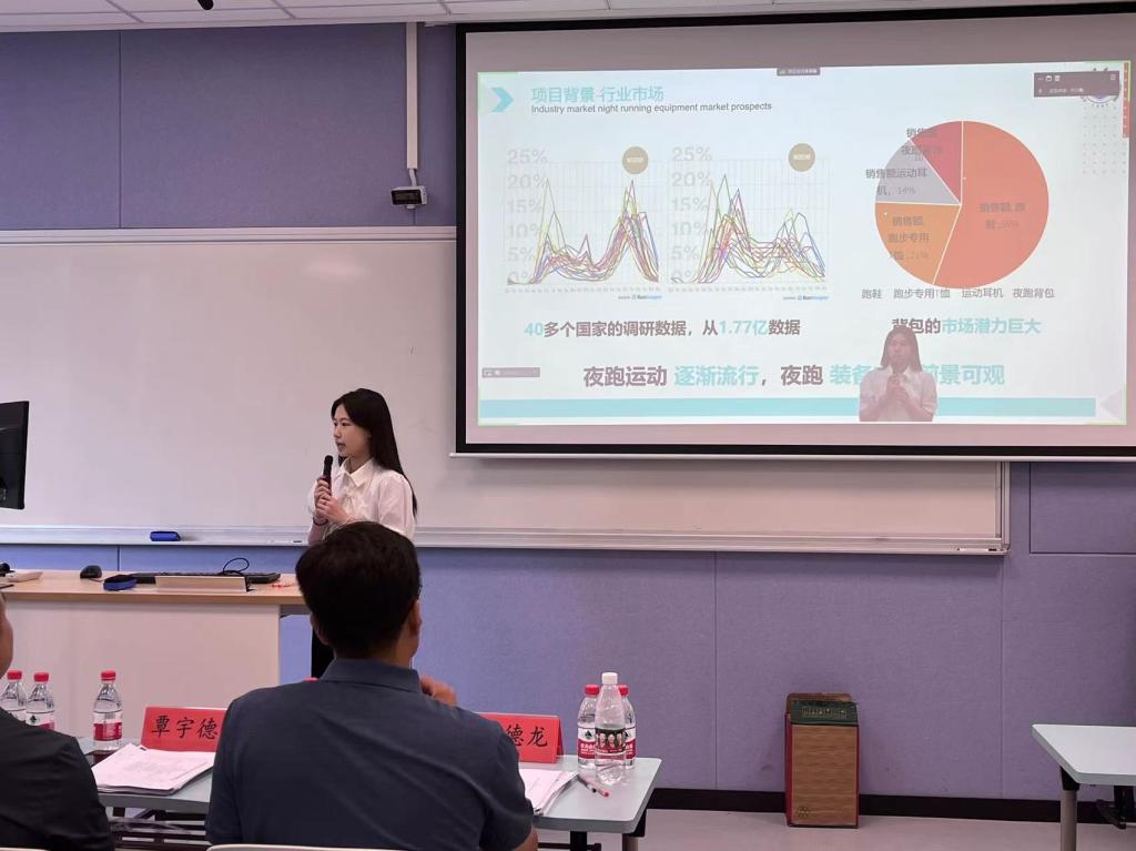 汇报第二项:“夜跑伊始——守护夜跑的安全践行者”,从运动、夜晚、安全等多方面,展开相关创新,旨在守护运动者的生命健康。