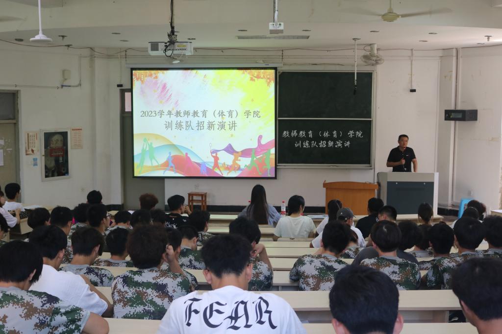 为了让新生们更好地了解各个训练队的基本情况,9月19日中午,教师教育(体育)学院于A5阶梯教室召开了训练队招新宣讲会。院党委副书记吴磊、辅导员朱浩楠、团学会社团部全体成员、各训练队负责人以及部分23级新生参加本次宣讲会。