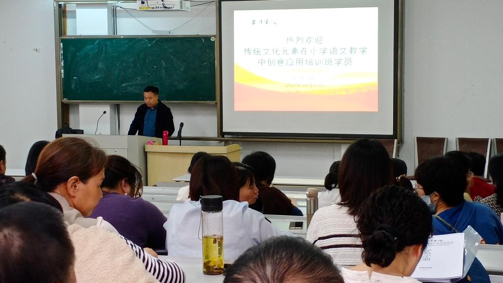 10月11日,传统文化元素在小学语文教学中创意应用培训和中华优秀传统文化与小学语文教学的整合培训在临海校区顾里酒店101、102教室正式开班。教师教育(体育)学院副院长覃宇德出席开班仪式,项目负责人徐向阳主持。