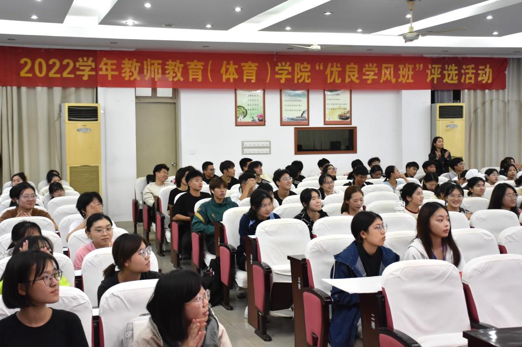 为了加强学院班风和学风建设,传播优良学风,充分调动学生共同建设优良学风的积极性,10月24日晚上,教师教育(体育)学院在图书馆六楼学术报告厅开展了2022年度“优良学风班”评选活动。院党委副书记吴磊,辅导员阎宝莹、季树宇出席本次活动并担任评委,参选班级代表及部分班级学生代表参加本次评选活动。