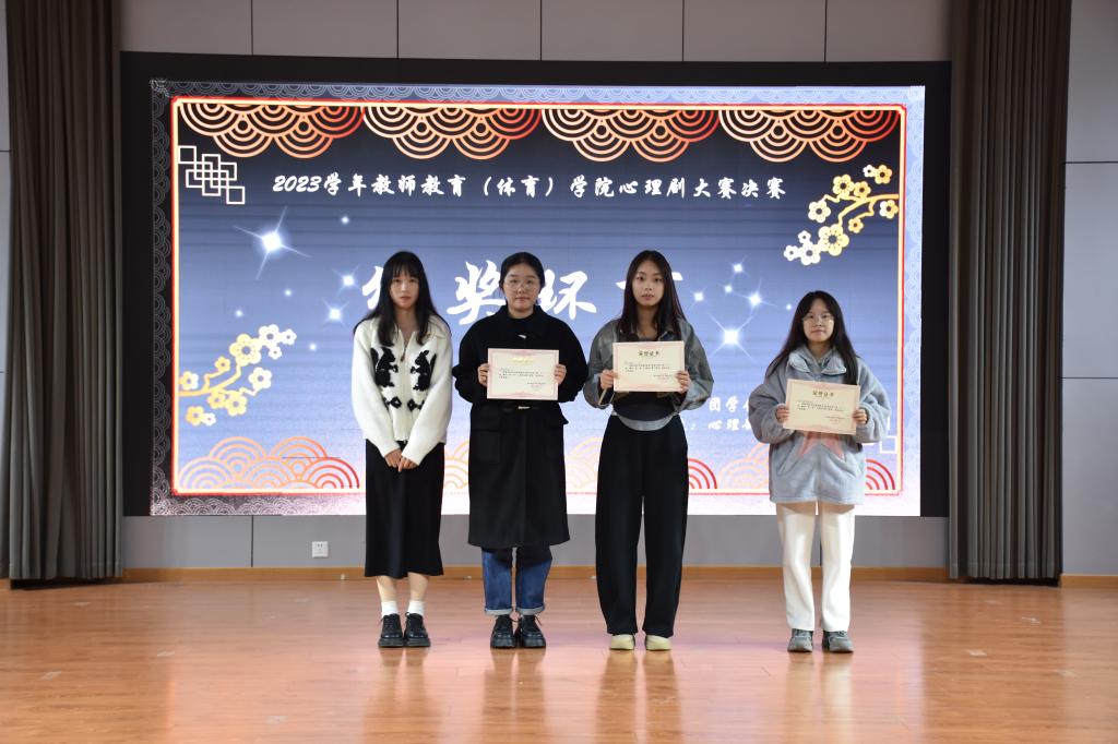 11月14日晚,教师教育(体育)学院于学生活动中心举办心理剧大赛决赛。辅导员阎宝莹、徐薇、朱浩楠、屈佳妮应邀观赛并担任评委。