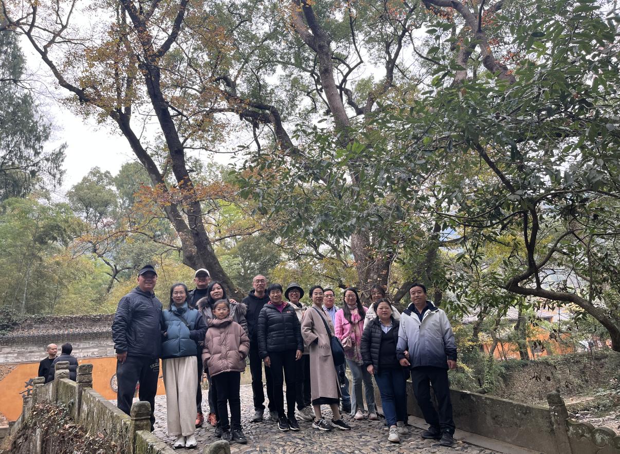 “物外千年寺,人间四绝名。两廊诸岳色,九里乱松声......” 跟随诗人李湘的脚步,老师们来到了隋代古刹国清寺。国清寺历史悠久,始建于隋开皇十八年,后取“寺若成,国即清”,改名为国清寺。作为中国佛教宗派天台宗的发源地,寺中优美的景致与深厚的文化底蕴无不让人沉醉。老师们先后参观游览了雨花殿、大雄宝殿、观音殿以及鹅自碑等地。王驭老师更是发出了“满目苍翠千重绿,香云袅袅润心间”的感慨。在这里,老师们仿佛穿越到古代,远离了浮躁与喧哗,寻得一隅宁静。