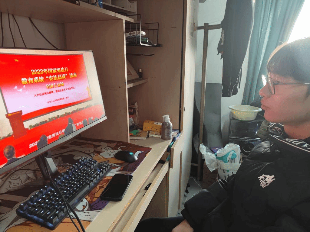 活动期间,学院同学热情高涨,线上以“宪法宣传周”活动为契机,学院鼓励引导学生积极参加全国学生“学宪法 讲宪法”活动网络学习和答题活动;组织学生观看“宪法晨读”活动,沉浸式让宪法精神持续深入学生心灵。线下,各班级团支部以团日活动为契机,各学生党支部将宪法相关的融入理论学习中,深刻帮助同学们深入了解了宪法精神的相关知识以及相关的应用措施。部分班级还组织了同学开展宪法晨读活动,了解相关法律法规,为全面推进依法治校、依法治教营造良好的氛围。