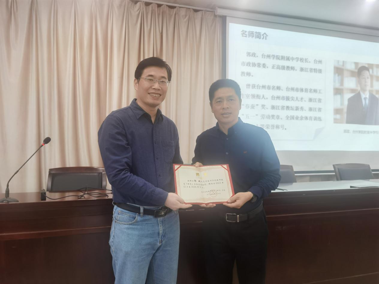 4月24日,台州学院附属中学校长郭政应邀莅临我校,与广大师生分享他的教师专业成长历程。教师教育(体育)学院张夫伟院长主持讲座,并为郭政颁发特聘教授证书,2021级体育教育学生和部分教师参加。