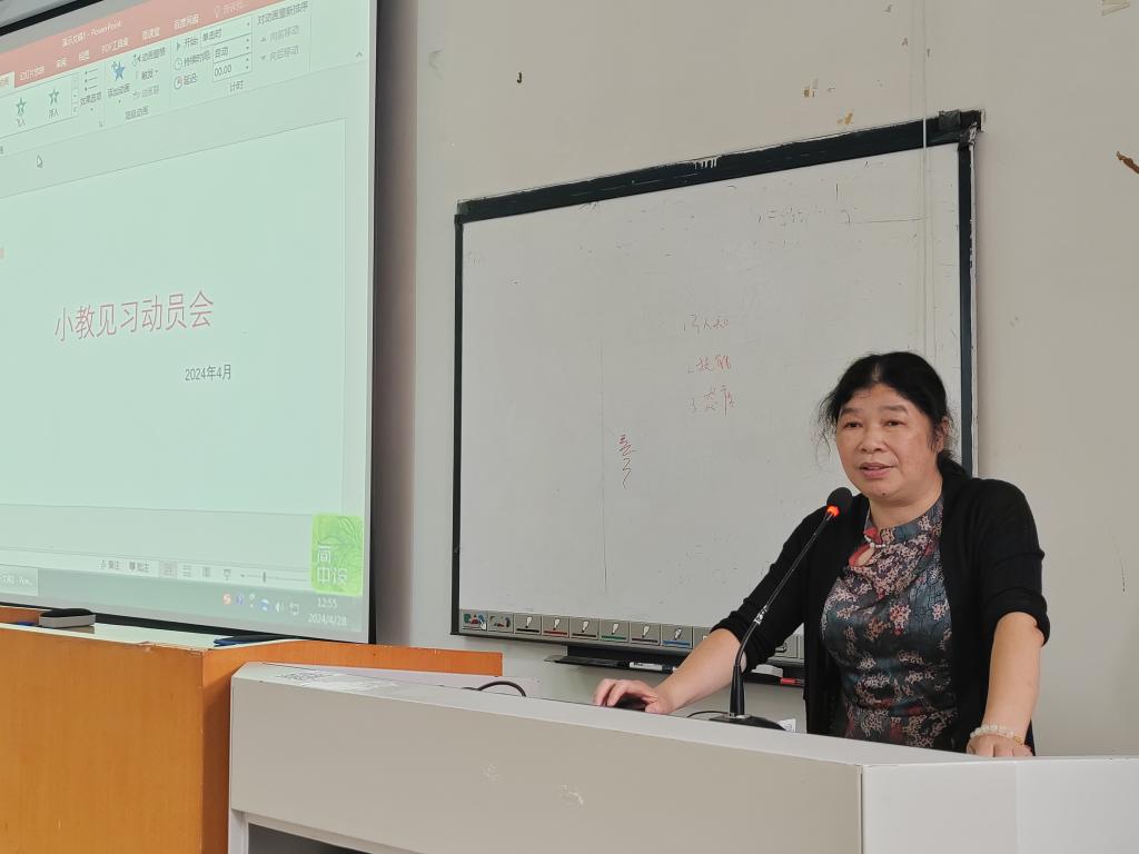 朱卫平老师对见习期间的活动进行了周密的规划与安排,悉心叮嘱了见习期间的核心任务,详细阐述了见习的各个环节和具体任务,并就一些实际问题给出了提示。她期望同学们能够珍视这次难得的见习机会,严格遵守见习学校的规章制度,听从见习指导教师的指导与安排。