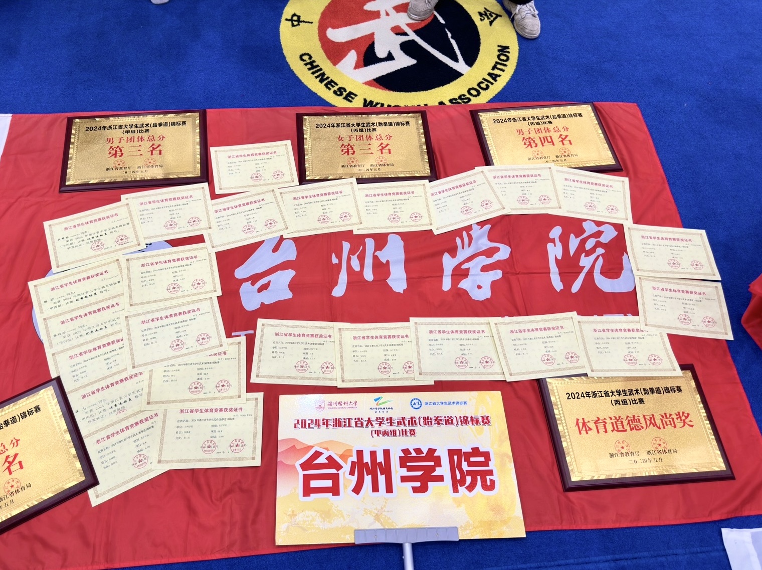 台州学院武术队以精湛的技艺和顽强的拼搏精神,在比赛中取得了辉煌战绩,共斩获两个冠军、五个亚军、两个季军,并荣获男子团体第三名、女子团体第三名及“道德风尚奖”的优异成绩。