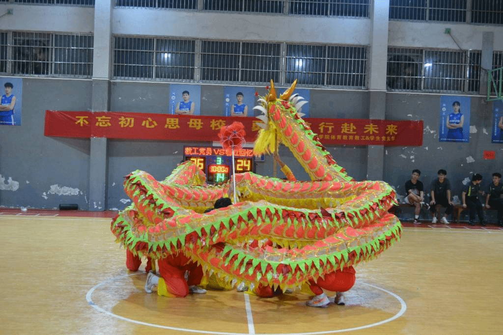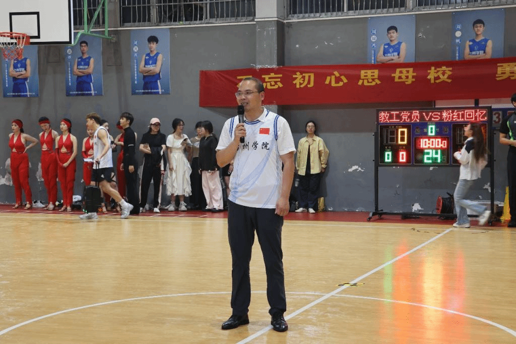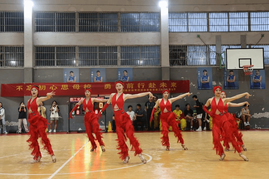 校拉丁训练队和健美操队进行激情满满、活力四射的开场表演后,比赛正式开始。汗水和青春共舞,篮球与热血碰撞,运动员们精神抖擞,配合默契,用巧妙的方法突破对手的防线,用精妙的传球助攻队友。精彩的瞬间层出不穷,观众大呼过瘾。在上半场的球赛中,教工队凭借着默契的配合和精准的投篮略胜一筹。