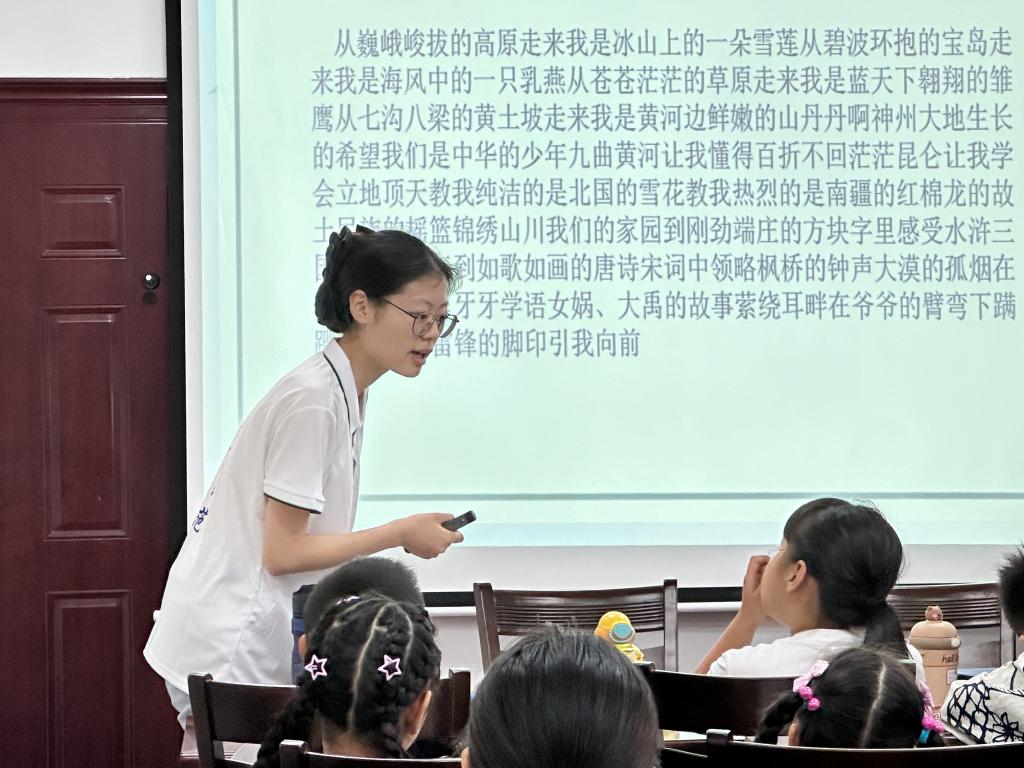 朗诵课以《如果信仰有颜色》为代表篇章,带领孩子们深入了解为什么信仰是红色的。孩子们认真配合,积极参与,以激昂的热情传递出这首诗所蕴含的独特魅力。