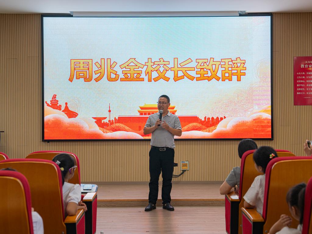 在演出开始前,三合镇中心小学周兆金校长发表致辞,他向实践队队员们致谢,并对孩子们日后的健康成长表达了深切的祝福。