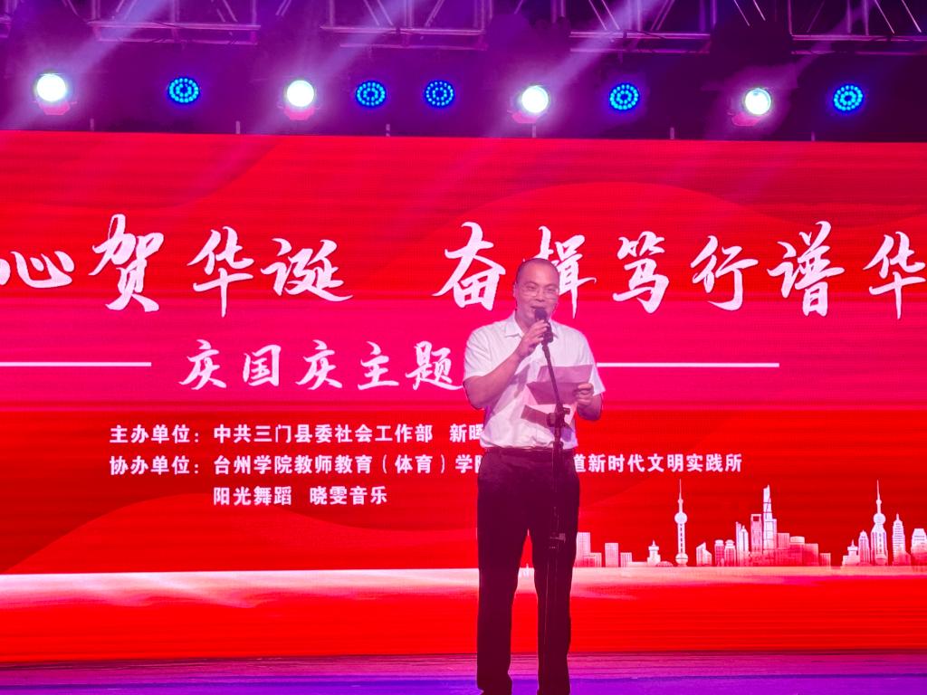 为深化党建联建、加强校地合作,着力推动基层党建水平有新突破、能力有新提升,真正实现优势互补、互促共赢,推动党建共建工作再上新台阶。教师教育(体育)学院于国庆节当日与三门县海游街道新晖社区开展党建联建迎国庆活动,共建大学生志愿实践基地并协办了“党群同心贺华诞 奋楫笃行谱华章”国庆晚会。院党委书记林辉杰、副书记吴磊,辅导员阎宝莹、朱浩楠参加活动。