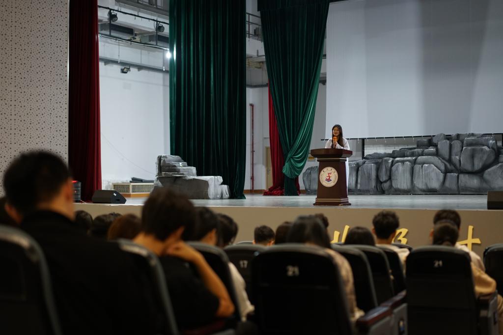 大会伊始,吴磊老师上台致辞,他向团学新成员表示热烈欢迎,以及肯定了团学会成员一直以来的工作,也对团学工作的进一步发展表达了期待。同时,他也对团学会干事们提出三点期望:一是提升责任意识,积极关注校园动态,争做同学与老师、学院间的沟通桥梁;二是找准自身角色定位,发扬团学组织的优良作风,端正工作态度,珍惜在团学会的工作机会;三是要以进取心对待学业,做好示范表率作用。
