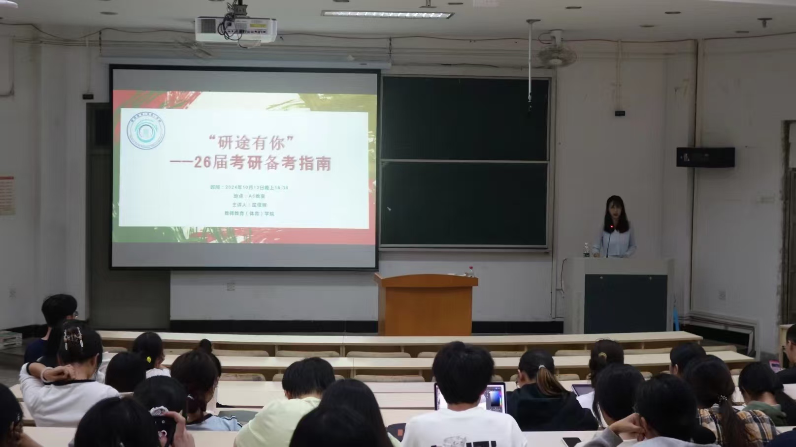10月13日晚,教师教育(体育)学院于A5教室举办考研讲座,众多怀揣考研梦想的教院学子前来参加。学院辅导员屈佳妮老师担任本次讲座主讲。