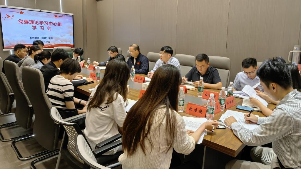 10月14日上午,教师教育(体育)学院召开党委理论学习中心组,校宣传部副部长冯荣参会指导,院领导班子成员、院党委委员、支部书记、院党委理论学习中心组成员参加会议,学院党委书记林辉杰主持会议。
