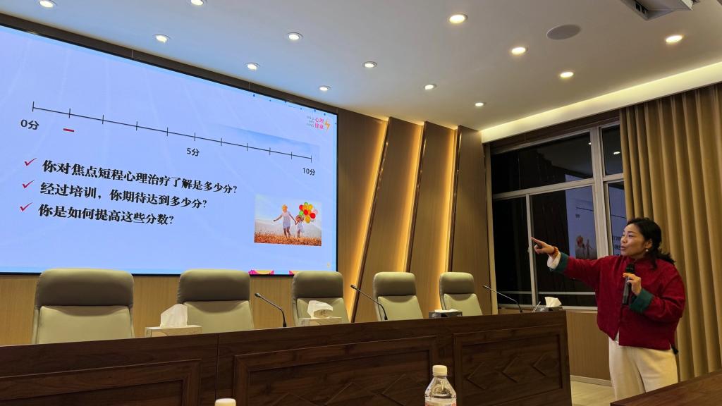 讲座伊始,金老师带领心理委员们复习了大学生常见的心理问题与精神障碍的识别方法,讲解了相关的应对策略。紧接着,金老师由温馨的绘本故事《点》引入了SFBT技术的概念,她指出SFBT(焦点解决短期咨询)是以寻找解决问题的方法为核心的短程心理治疗技术。与以问题为焦点的咨询技术相比,SFBT技术聚焦于解决之道,更加关注来访者的优势、资源和动力。