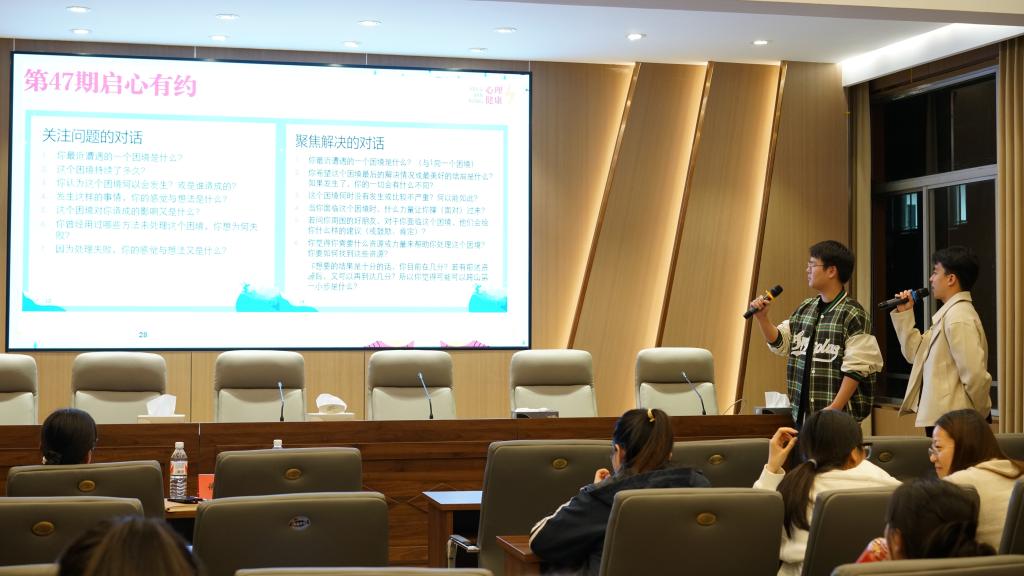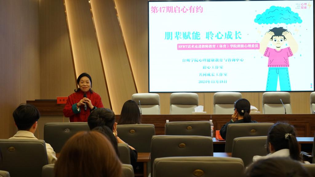 11月18日晚,“朋辈赋能,聆心成长——SFBT话术走进教师教育(体育)心理委员”主题讲座于临海校区5302会议室成功举行,此次讲座由校心理健康教育与咨询中心主办,教师教育(体育)学院聆心工作室、共同成长工作室协办。讲座邀请了校专职心理咨询师金彩云老师主讲,辅导员徐薇、朱佳婧出席,学院部分心理委员参与。