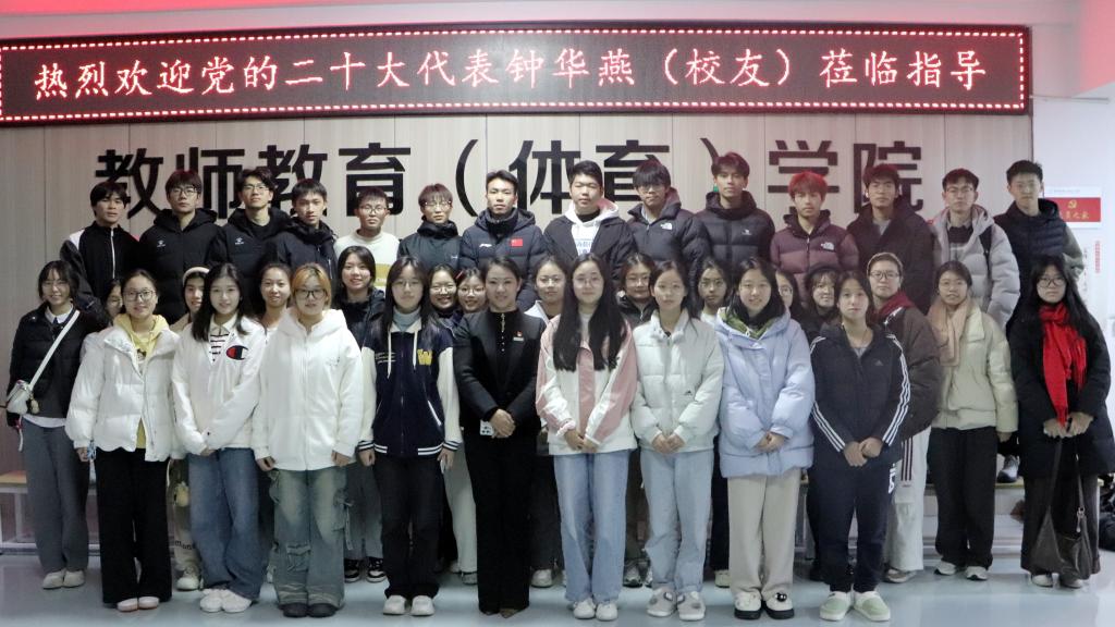 12月7日下午,党的二十大代表、我校2008届体教专业校友钟华燕受邀与青年学生做“争做有党性的人民教师”主题交流活动。教师教育(体育)学院党委书记林辉杰主持交流会。
