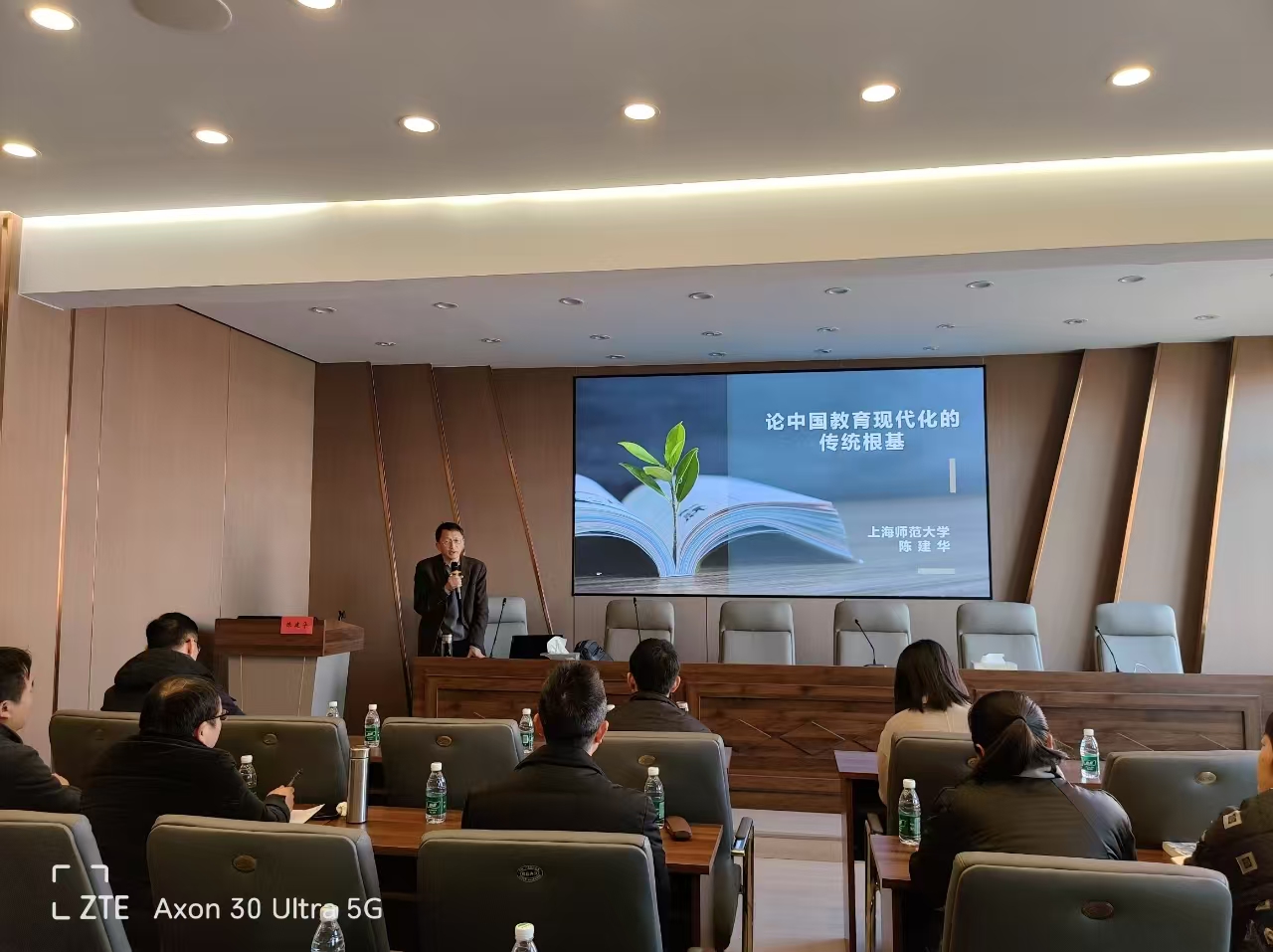 12月20日上午,上海师范大学陈建华教授应邀来校作题为《中国式教育现代化的传统根基研究》讲座。教师教育(体育)学院院长张夫伟主持,学院党政班子领导及学院科研骨干教师参加。