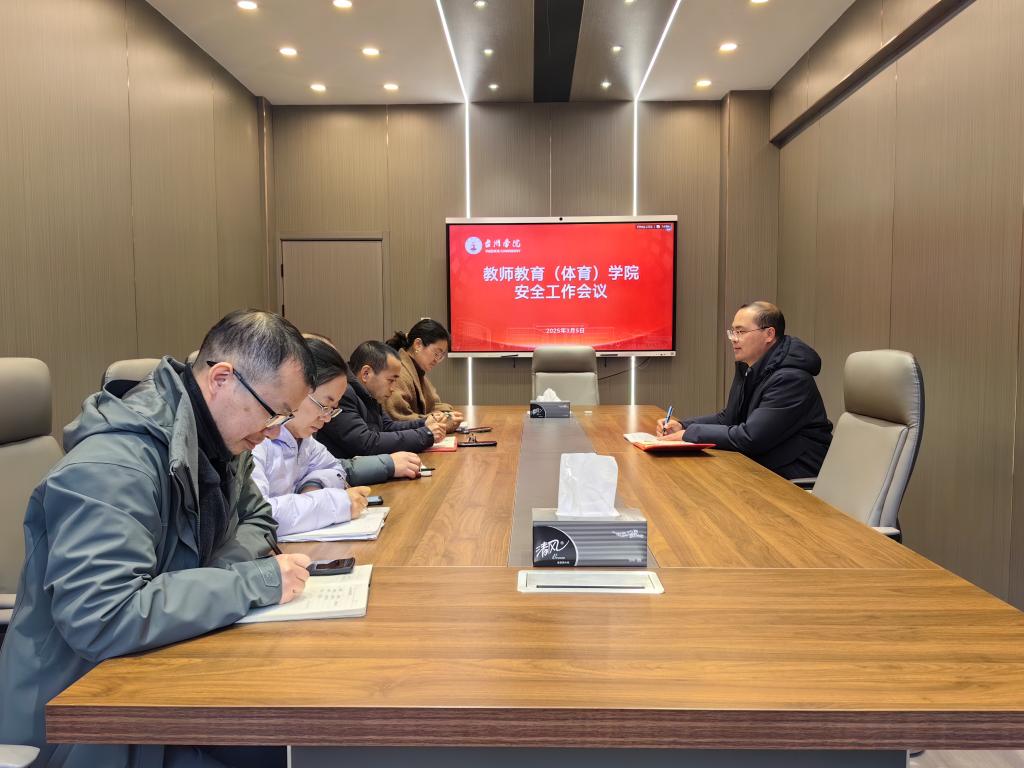 为进一步强化安全管理,研究部署学院安全工作,3月5日下午,教师教育(体育)学院在临海校区5号楼314会议室召开安全工作专题会议。学院党委书记林辉杰主持会议,办公室、学工办、教务办、实验室、体育场馆等科室负责人参加。