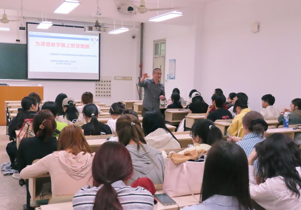 为提升师范生的教学技能和适应新时代教育技术的能力,教师教育(体育)学院于4月10日在2102教室举办了“大数据背景下的课堂教学展开”名师讲堂系列讲座。本次讲座特别邀请了临海市高级职业中学的王建华老师,就“大数据背景下的精准教育实践”主题进行了深入探讨。