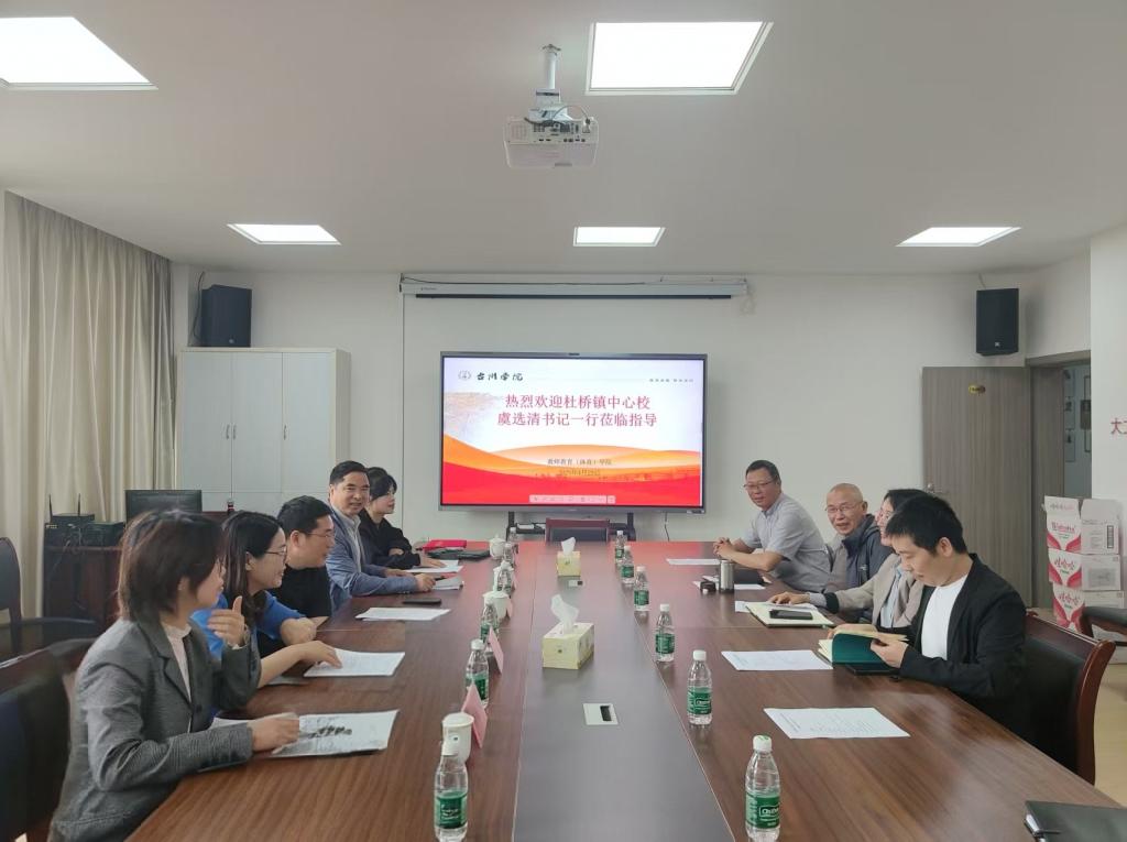 4月23日上午,临海市杜桥镇中心校党总支书记虞选清、校长郭利明一行来院洽谈"评价改进驱动教学质量提升"试点项目,并签订合作协议。教师教育(体育)学院副院长张樱樱、基础教育研究院执行院长王少非教授、项目团队成员出席洽谈仪式,汪贤泽博士主持。