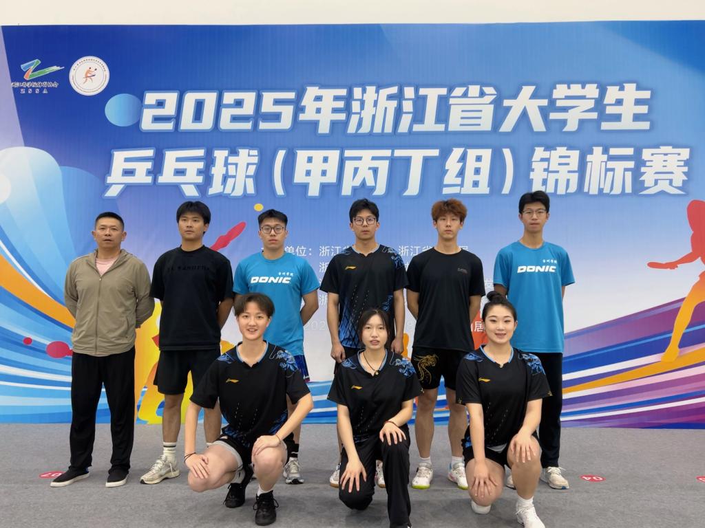 由浙江省教育厅、浙江省体育局主办的2025年浙江省大学生乒乓球锦标赛于5月13日至5月18日在台州仙居全民体育馆举行,全省共有63所高校、71支运动队、700余名运动员同场竞技。校乒乓球队在领队戴晓捷和教练员许双陆、齐婷婷的带领下,取得该项赛事历史最好成绩。