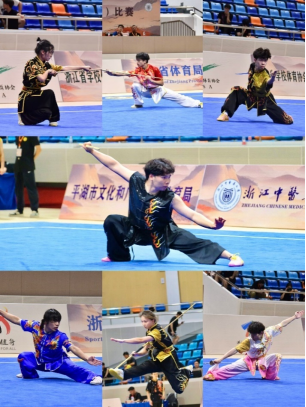 赛场上,运动员们步伐如松,身法似电,拳掌间劲力吞吐,招式里气韵流转尽显中华武术的刚柔之道。刀光起落如银龙破空,剑影翩跹似青鸾回舞,长棍横扫挟风雷之势,一招一式将传统武术的形神兼备、内外兼修演绎得淋漓尽致。台州学院武术队的卓越表现生动诠释了我校学子迎难而上、锐意进取的拼搏精神,完美体现了校民族传统体育“以武修德、以德砺行”的文化精髓,在省赛舞台上书写了属于台州学院的武术华章。
