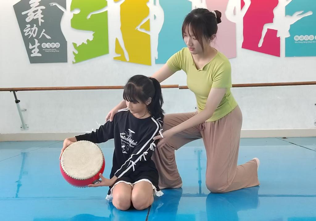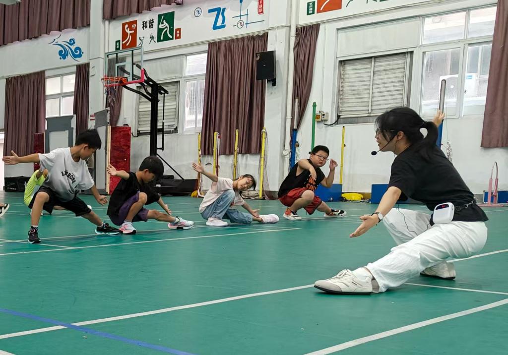 “欢舞启韵” 课程融合教学与游戏环节,舞蹈学习中穿插了 “击鼓传花”“动作萝卜蹲” 等节奏游戏。孩子们创编 “海浪舞”“编渔网” 等融入海洋、渔家文化的动作,让孩子在欢笑中感受温岭文化与儿童舞结合的活泼欢乐。