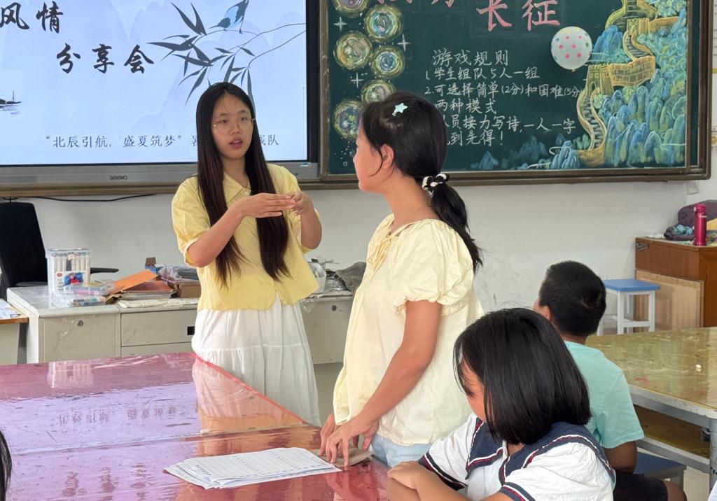 近日,“北辰引航”暑期社会实践队举办了一场别具特色的家乡风情分享会。同学们从家乡地名、特色美食、风景名胜等方面向大家介绍了祖国各地独具特色的风土人情,让热爱家乡、坚定文化自信的种子在孩子们心中生根发芽。