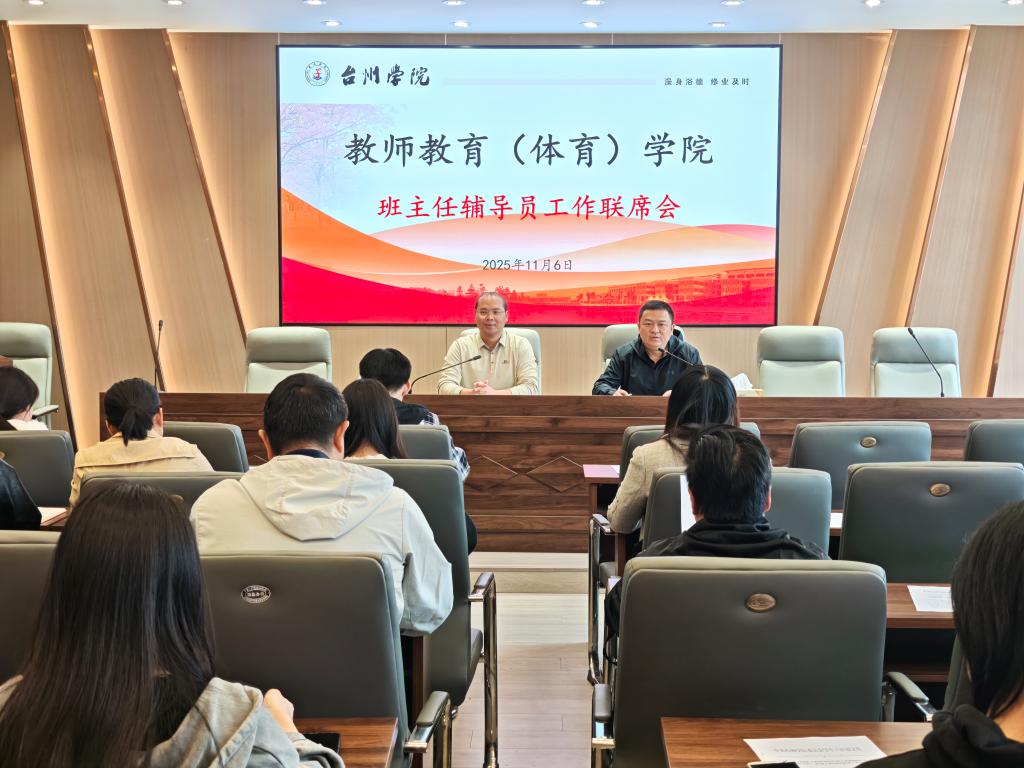 为深入贯彻落实学校学生工作有关部署,进一步凝聚育人合力,11月6日教师教育(体育)学院召开辅导员班主任工作联席会。院党委书记林辉杰出席会议,全体辅导员及班主任共同参会,吴磊主持会议。