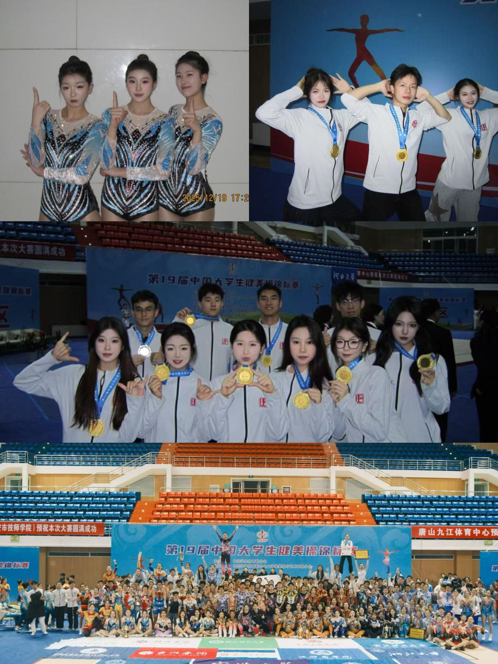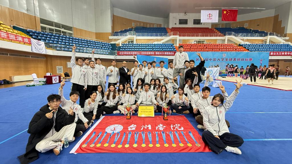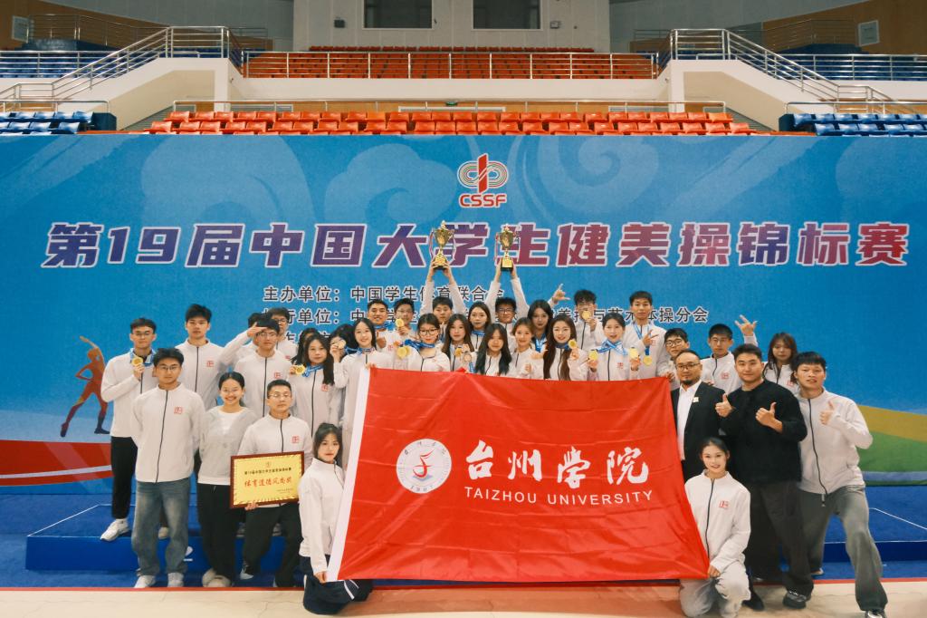 12月16日至21日,第19届中国大学生健美操锦标赛在河北迁安火热开赛。台州学院健美操队34名队员在吴博、王湘淋两位教练的带领下出征赛场,与浙江大学、北京师范大学、宁波大学等全国69所高校的健儿同台竞技,凭借扎实的功底与出色的临场发挥,一举拿下甲丙组团体冠军。吴博教练荣获优秀教练员奖项,我校同时获评体育道德风尚奖。