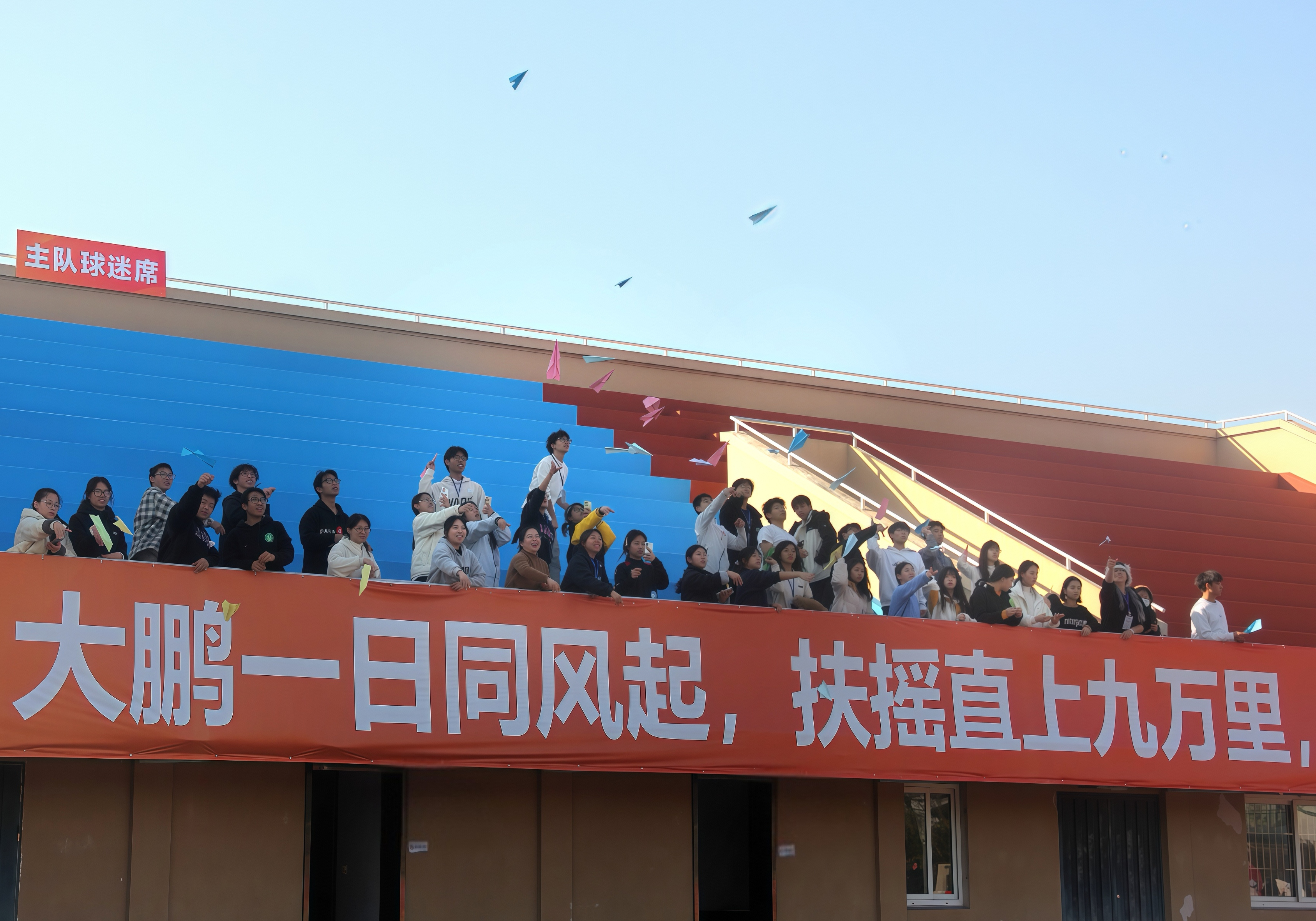 最具温情的环节当属“纸飞机寄愿”。同学们执笔写下烦恼或期盼,将纸页折成飞机的形状,奋力抛向晴空。纸飞机随风而起,仿佛承载心事远去,亦托付愿望高飞,成为午后一道动人的风景。活动尾声,大家手持明信片合影留念,方寸纸片如舟,载起同心热望,这场与暖阳的邂逅,让少年意气在风中自在生长。