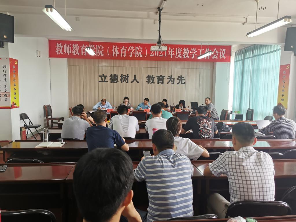 5月27日下午,教师教育学院(体育学院)在学院党员之家会议室召开2021年度教学工作会议。院长杜才平及领导班子成员、各系部主任和骨干教师出席会议,教务处副处长李银丹应邀参加,会议由副院长吴银银主持。