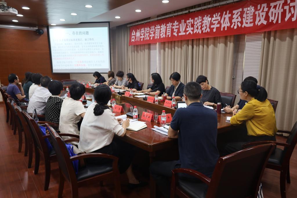 为了进一步加强学前教育专业实践教学体系建设,9月29日下午,教师教育学院在临海校区第一会议室召开了学前教育专业实践教学体系建设研讨会。汤霞敏老师主持会议,教务处副处长李银丹,教师教育学院院长杜才平,副院长吴银银,学前教育专业全体教师以及12位来自临海市、椒江区、天台县幼儿园的园长参加。