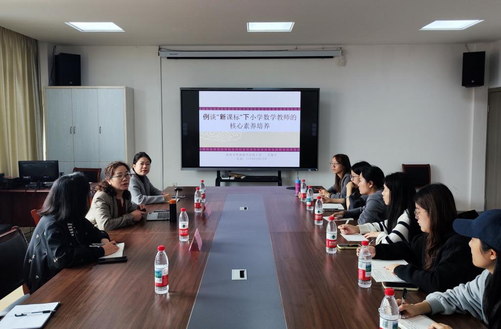 在专题分享环节,王菊女副校长结合自身多年小学数学教学与研究经验,作了一场深入浅出、富有启发性的报告。她围绕小学数学教师的核心素养,系统解读了“三会”“四基”“四能”的内涵与教学指向,指出在新课标背景下,教师应具备“会学、会说、会写”的综合能力。王校长还通过比对不同版本教材内容,结合实际课例“圆”与“百分数”的教学设计,生动阐释了“玩乐教学”理念在课堂中的实践路径,引导研究生思考如何将教育理论与教学实践有机融合。