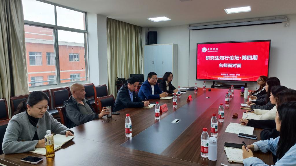 为持续推进教育硕士培养模式改革,强化理论与实践融合,11月6日,教师教育(体育)学院顺利举办第四期研究生知行论坛,本期主题为“名师面对面”。活动特邀临海市杜桥镇中心校党总支书记虞选清、校长郭利明担任主讲嘉宾。学院副院长张樱樱、资深教授王少非、研究生助理鲁正一及2025级全体全日制教育硕士研究生参会,会议由张樱樱副院长主持。